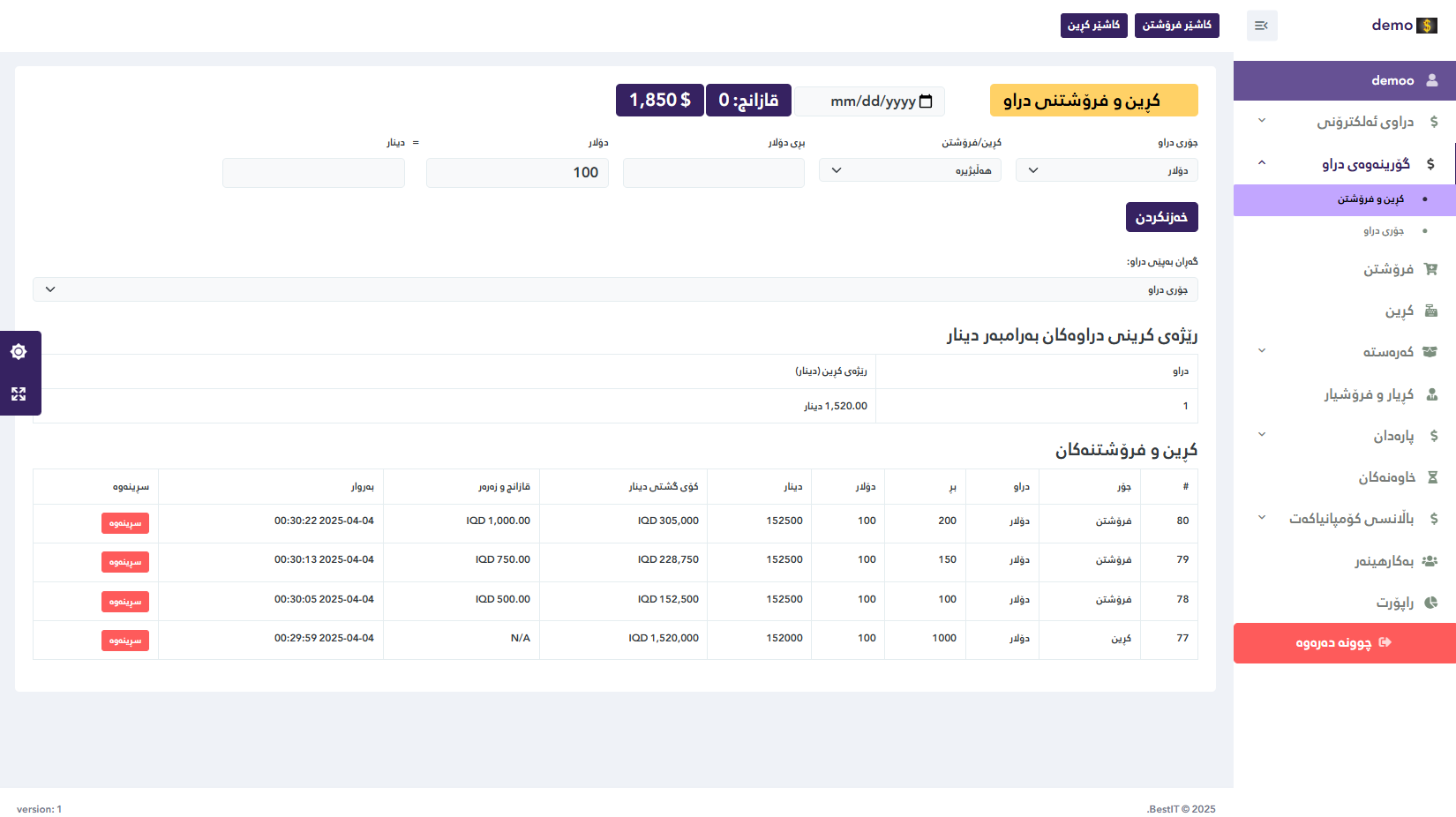 ا 📱📶💻💱📀🛜🖱️💲 ا دروستکردنی سیستەم بۆ دیار فۆن لە شاری کەرکوک تایبەتمەندی سیستەمەکە: ✅ناردن و وەرگرتن هەموو جۆرە دراوێکی ئەلکترۆنی وەک FIB و Fast pay. ✅کڕین و فرۆشتنی دۆلار. ✅کڕین و فرۆشتنی هەموو جۆرە کەرەستەیەک وەک و سیم کارت و مۆبایل. ✅زانینی قەرزی کڕیار و کۆمپانیا. ✅خەرجی رۆژانە. ✅قازانج بەپیی بەروار. ✅زانینی سەرمایەی کۆمپانیاکەت. ✅زانینی نرخی کۆی گشتی کاڵاو شتە جێگیرەکنی کۆمپانیاکەت. ✅جەردی دوکان پێت دەڵێت چی ماوەو چی نەماوە. ✅خەمی زانیاریکانیشت نابێ نافەوتێ ئەگەر کۆمپیوتەرەکەشت لە کار بکەوێت چونکە ئۆنڵاینە. ✅دەتوانیت لە هەمان کاتدا هەموو ئەو شتانە لە مۆبایلەکەشتەوە بیکەیتەوە. ✅جیاکردنەوەی ڕێگەپیدانی بەکارهێنەر، کە نەتوانێ قازانج و هەنی بەش ببینێت. ✅ لە هەمووشی گرنگتر ئەوەیە تا هەتا هەتایە پاڵپشتی هەیە، هەر کاتیک بێت دەتوانی پەیوەندیمان پیوە بکەیت. ✅ لەگەل زۆر زانیاری زیاتر. تۆش ئەگەر وێبسایت یاخود سیستەمت پێوەستە بۆ بزنسەکەت ئەوا ئێمە هەڵبژێرە بە باشترین کوالیتی و بە هەرزانترین نرخ بۆت دروست دەکەین. 📍ناونیشان: سلێمانی - دوو سایدی چوارتای کۆن - سەروو ئامادەیی پیرەمێرد 07701363477 واتساپ 07501363477 🔸بێست ئای تی بۆ دروستکردن سیستەم و داتابەیس و وێبسایت #بێست_ئایتی #سیستەم #داتابەیس #سیستەمی_کاشێر #وێبسایت #ئایتی #دراوی_ئەلکترۆنی #fib #fastpay #دۆلار