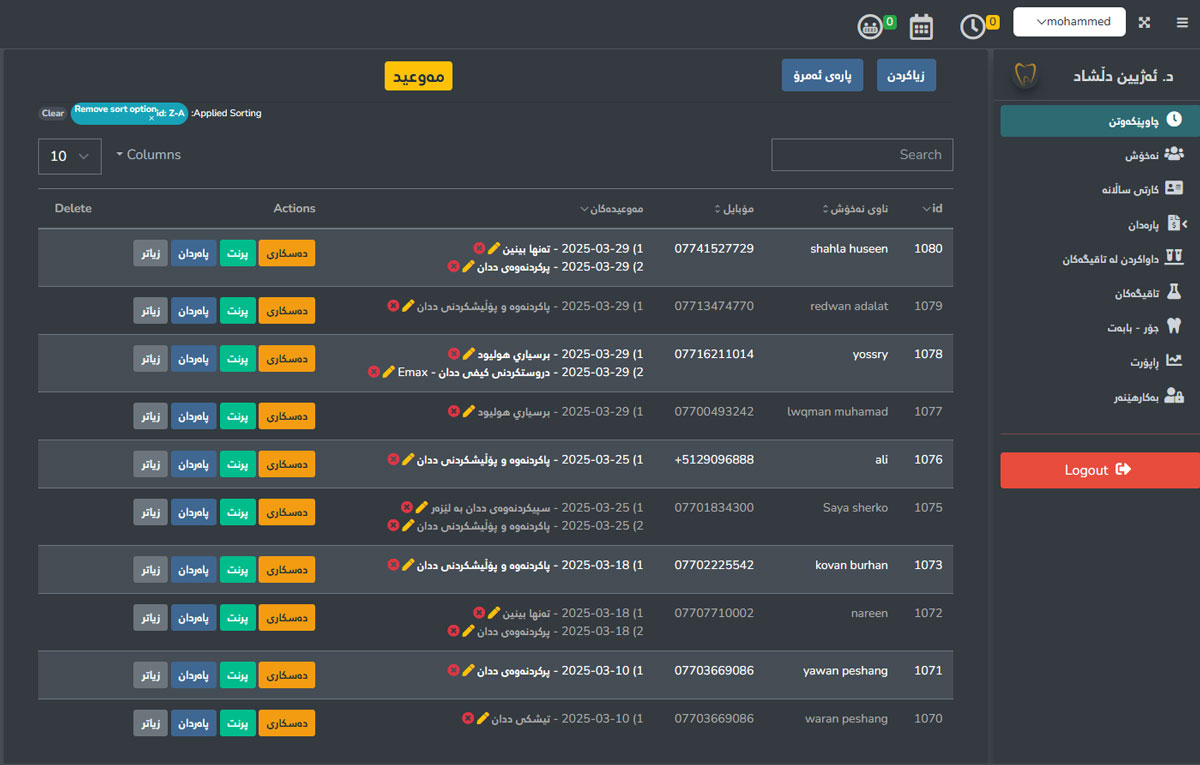 ا 🧪💉🧬🩸🩹 ا دانانی سیستەم بۆ کلینکی د. ئەژین دڵشاد لە بەختیاری تایبەتمەندی سیستەمەکە: ✅زانینی مەوعیدەکانی ئەمرۆو سبەینی و رۆژانی کە. ✅زانینی قەرزی نەخۆش و زانیاری تەواو لەسەر مەوعیدەکانی نەخۆش. ✅ زانیاری تەواو لەسەر ئەو تاقیگەیانەی کە ئیشی لەگەل دەکەن بۆ نموونە دروستکردنی تاقم دان. ✅قەرز و پارەدانی نەخۆش و تاقیگەکان. ✅مامەڵە کردن بە دینار و دۆلار. ✅ کوالیتی بەرز و خیرایی لە کاتی بەکارهێناندا. ✅پاڵپشتی بەردوام بۆ هەتا هەتایە. ✅دروستکردنی کارت بۆ نەخۆش. ✅دەتوانیت لە هەمان کاتدا هەموو ئەو شتانە لە مۆبایلەکەشتەوە بیکەیتەوە. ✅جیاکردنەوەی ڕێگەپیدانی بەکارهێنەر، کە نەتوانێ قازانج و هەنی بەش ببینێت. ✅لەگەڵ چەن تایبەتمەندی و راپۆرتی زیاتر... تۆش ئەگەر وێبسایت یاخود سیستەمت پێوەستە بۆ بزنسەکەت ئەوا ئێمە هەڵبژێرە بە باشترین کوالیتی و بە هەرزانترین نرخ بۆت دروست دەکەین 📍ناونیشان: سلێمانی - دوو سایدی چوارتای کۆن - سەروو ئامادەیی پیرەمێرد 07701363477 واتساپ 07501363477 🔸بێست ئای تی بۆ دروستکردن سیستەم و داتابەیس و وێبسایت #بێست_ئایتی #سیستەم #داتابەیس #سیستەمی_کاشێر #وێبسایت #کلینک #سەنتەری_ددان
